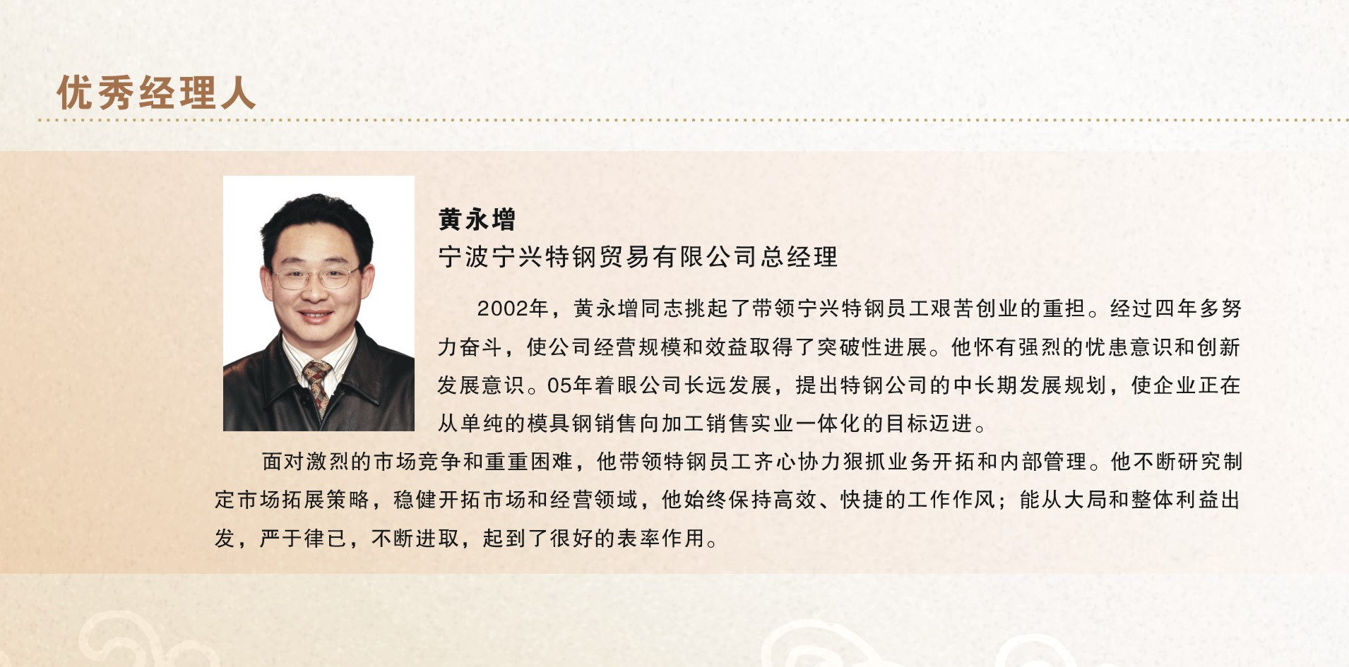 2005年度 控股公司优秀经理人(英国365集团公司特钢公司总经理 黄永增)