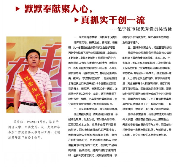 2011年度宁波市优秀共产党员---吴雪泳(英国365集团公司国贸)