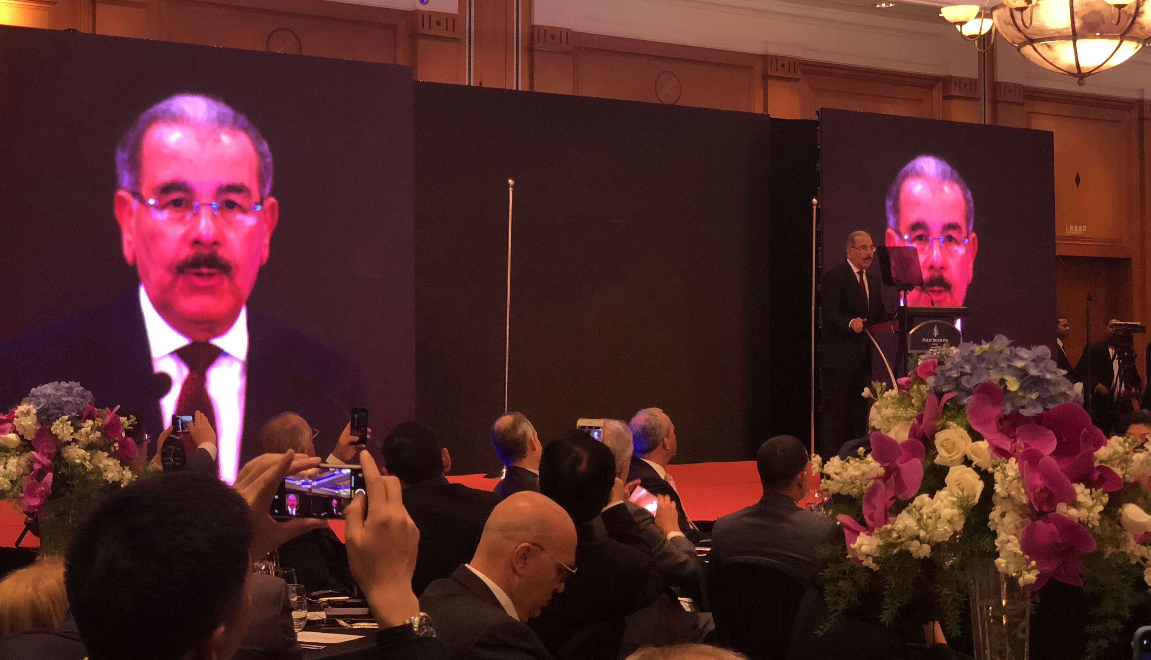 应多米尼加共和国驻中国大使馆邀请,英国365集团公司董事长吴以刚于11月5日晚出席由多米尼加驻华大使馆举办的、多米尼加共和国总统达尼洛·梅迪纳·桑切斯出席的高级别招待晚宴。本次招待宴会在上海四季酒店举行,陪同梅迪纳总统出席的有多米尼加外交部长、新闻部长等高级官员以及来自制造业自贸区、旅游、投资等不同领域的顶级企业家们。陪同吴以刚董事长参加招待晚宴的有英国365集团公司副总裁黄永增、英国365集团公司•多米尼加DJM鞋业公司总经理童小建、英国365集团公司总裁办主任顾伊琳等三位。
