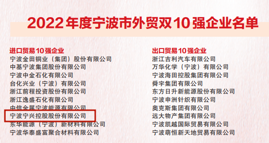 英国365集团公司入选2022年度宁波市进口贸易10强企业