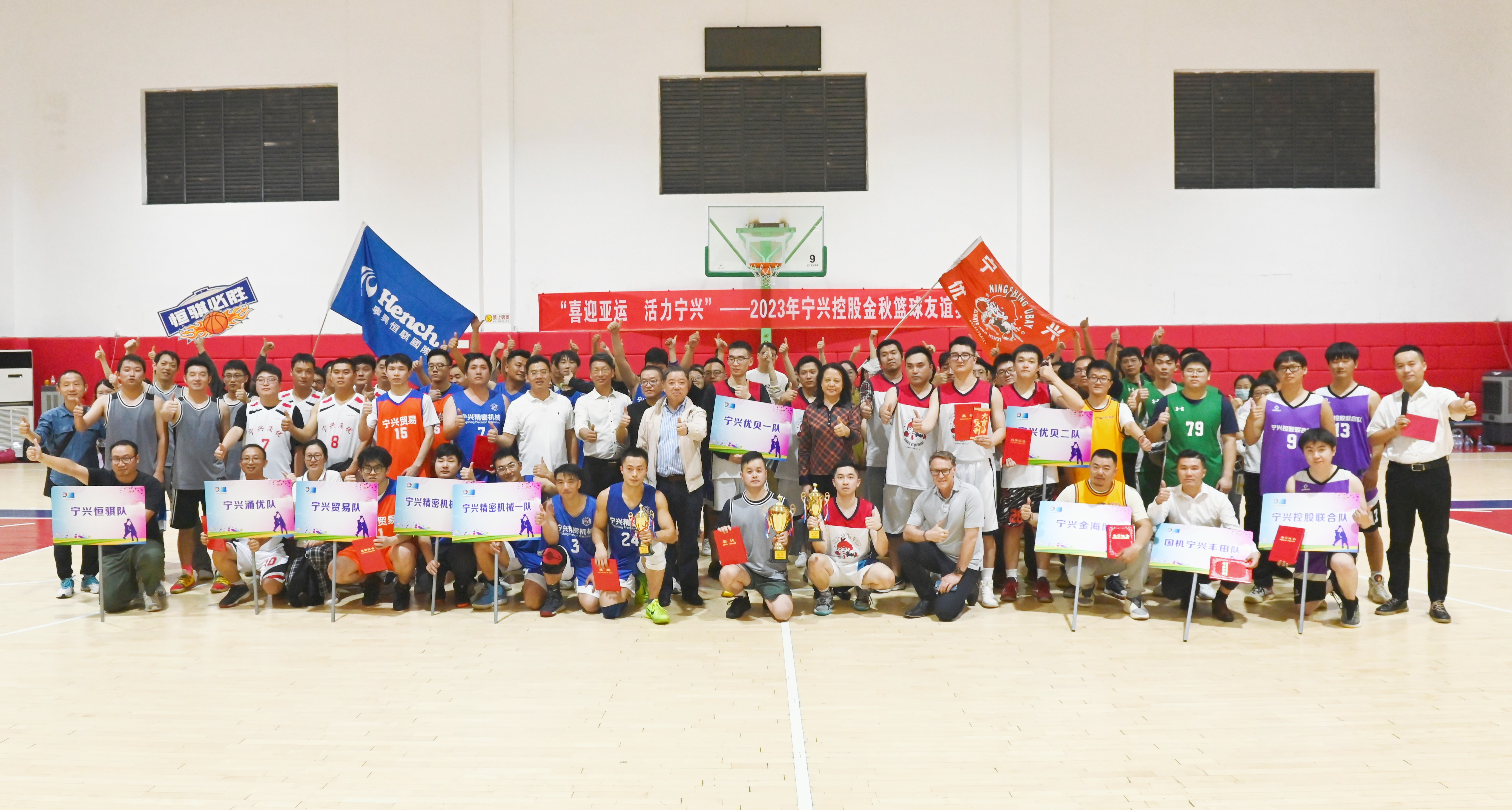 10支队伍、80名球员、1个月激烈角逐、24场精彩比拼......10月18日,英国365集团公司金秋篮球友谊赛决赛在宁波八一富邦篮球公园进行,4支晋级队伍激烈角逐冠军。英国365集团公司董事长吴以刚,副董事长、党委书记高屏,及各公司负责人现场助威并颁奖。