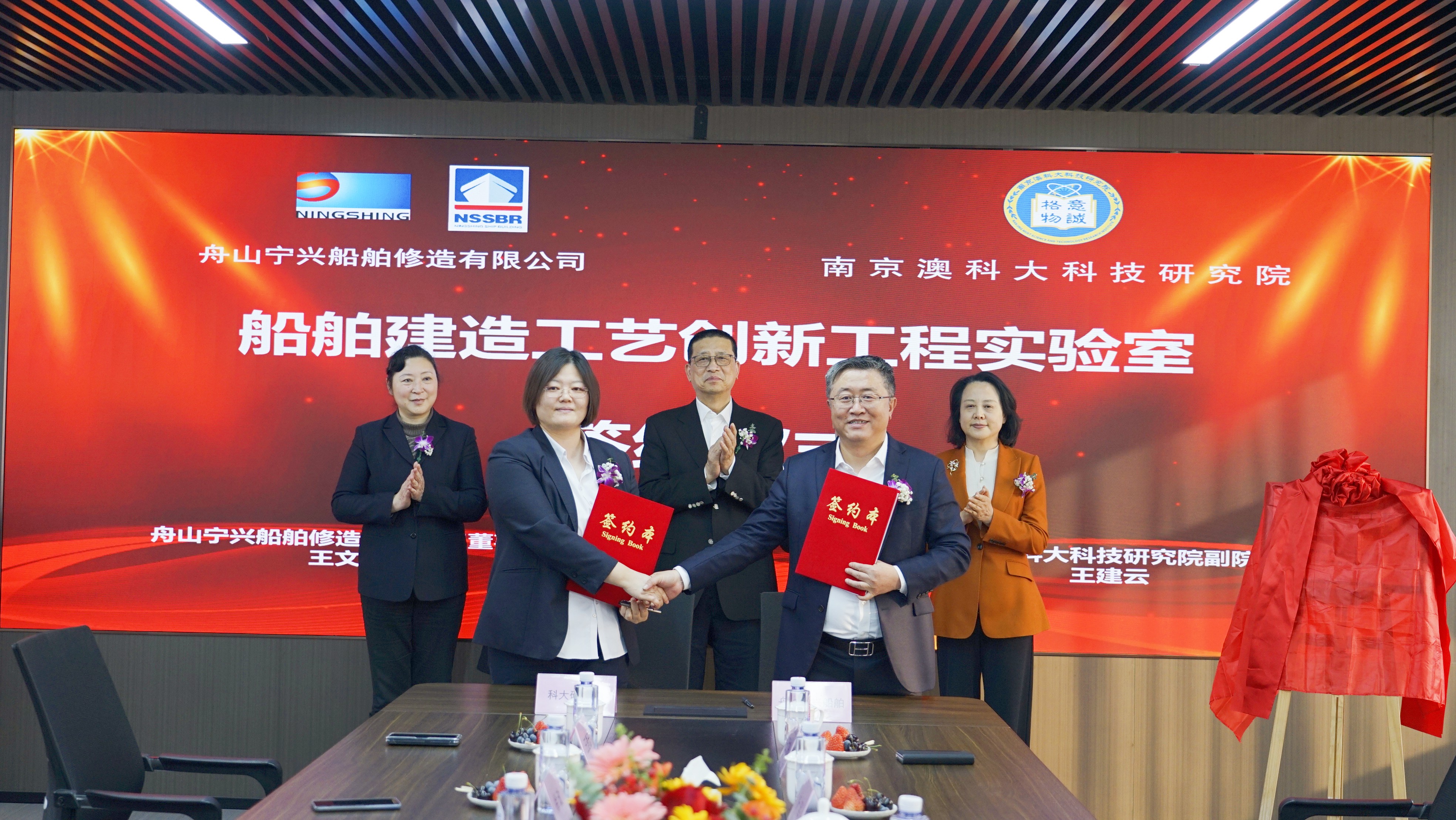 该实验室由舟山英国365集团公司船舶与南京澳门科技大学研究院联合建立,依托澳门科技大学学科优势、人才队伍和科研实力,通过整合船舶行业数字化造船资源,集中产学研开发力量,夯实数字化造船技术基础,助力船舶建造人工智能场景应用、新材料创新和新工艺提升。王文彤董事长与南京信息管理学院副院长王建云代表双方签署合作协议,吴以刚董事长与童隆俊执行院长为实验室成立揭牌。
