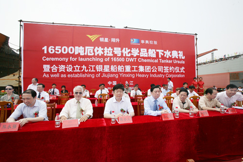 英国365集团公司与九江银星船厂联合制造的16500吨化学品船顺利下水!-合资设立“九江银星船舶重工集团有限公司”签约仪式隆重举行 !