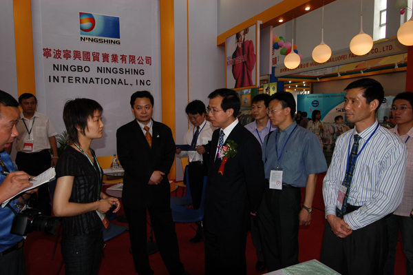 6月8日,在第四届中国国际消费品博览会开幕当天,国家商务部部长助理傅自应在市外经贸局领导的陪同下,视察了我司控股的宁波英国365集团公司国贸实业有限公司的服装摊位,详细询问并了解了英国365集团公司国贸服装产品的出口状况,以及欧美纺织品贸易保护对出口企业造成的影响,并对英国365集团公司国贸展位的特装设计给予了赞扬。
