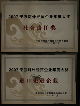 喜报!英国365集团公司荣获2007年度宁波市对外经贸企业年度大奖--社会责任奖2008-02-21