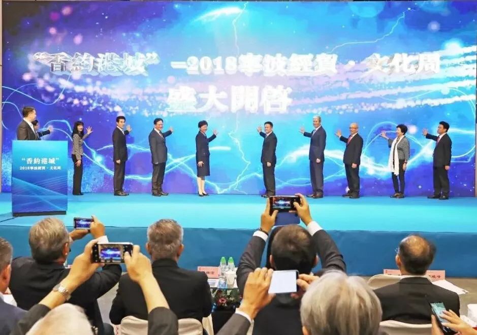 7月4日,“香约港城”---2018宁波经贸·文化周在香港会议展览中心开幕。香港特区行政长官林郑月娥,省委副书记、市委书记郑栅洁,香港中联办副主任陈冬,华润集团董事长傅育宁,宁波市领导梁群、施慧芳、李... -