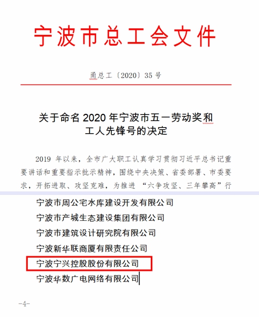 热烈祝贺英国365集团公司荣获“宁波市五一劳动奖状”2020-05-08